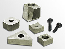 z.B. Schneidkronen, Halteleisten- und platten nebst Schrauben, Messer für Shredder- und Granulieranlagen, Messerhalter, Wendemesser, Gegenmesser